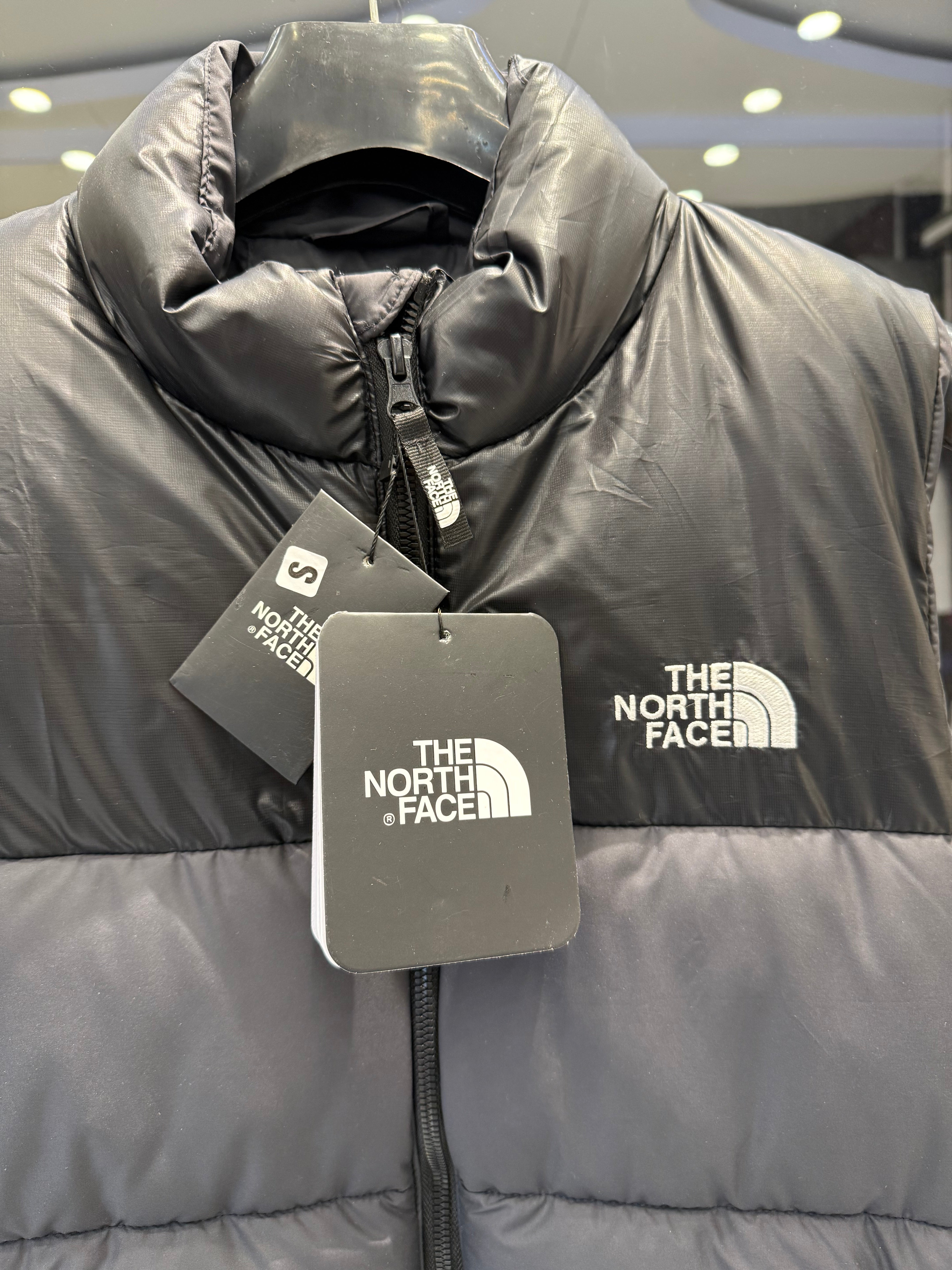 This The North Face men’s puffer sleeveless jacket in dark grey and black is built for cold-weather versatility with a clean, minimal look. The insulated construction traps warmth efficiently while the sleeveless design allows unrestricted movement, making it ideal for daily wear, travel, and light outdoor activities.